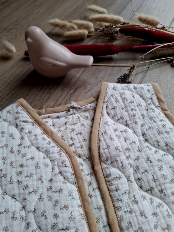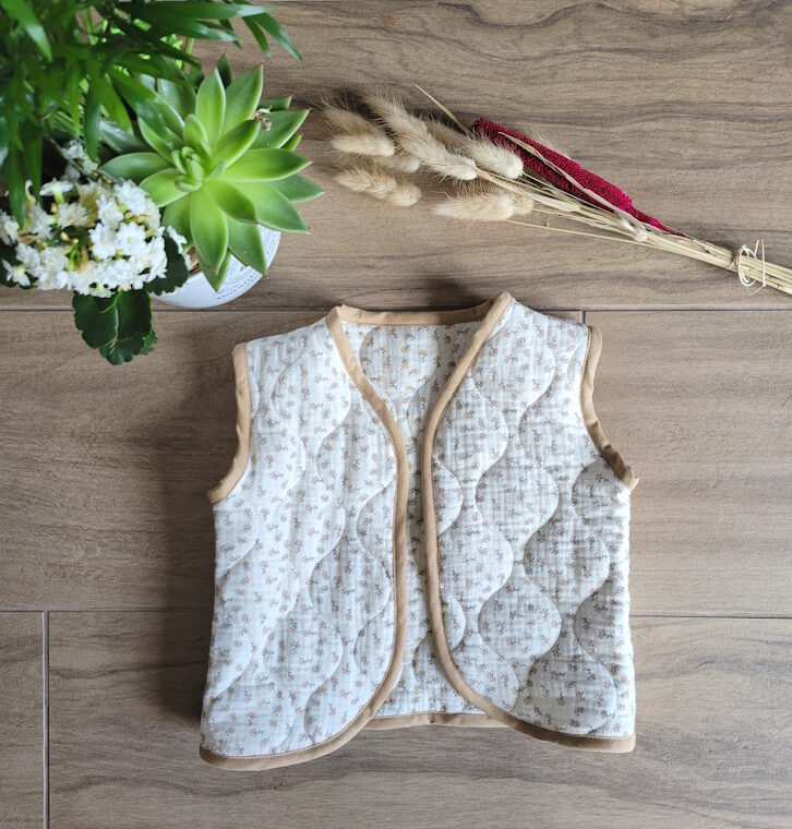 Gilet sans manche Matelassé double gaze Jeannette rose et Jaune moutarde